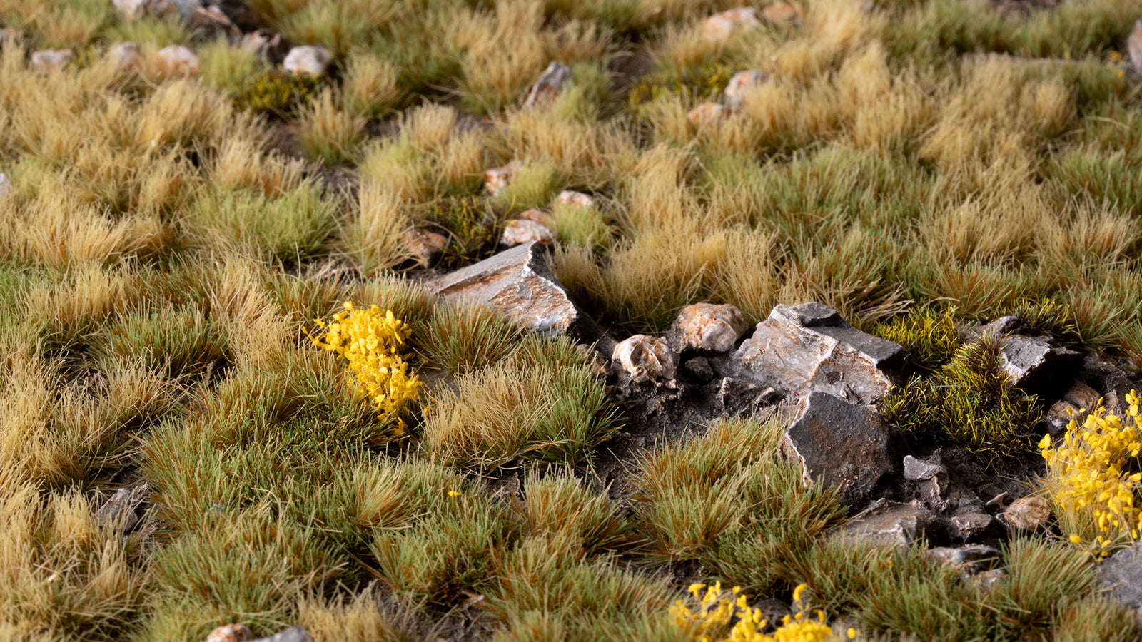 This colour set is best used to recreate a diversity of landscapes, particularly scrubs and dwarf shrublands, vegetation patches with an intense variation of greens, spotted here and there with yellow flowered bushes. This tuft set contains the same colours and sizes used in our Highland Battle Ready Bases.
