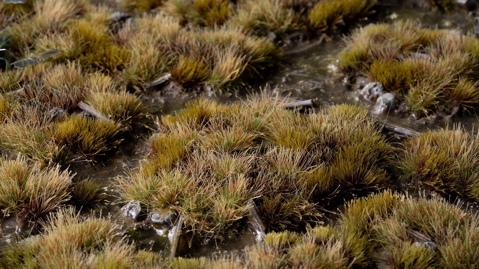 This colour set includes a diversity of tufts with green, brownish and light tips, with darker brown bases. They simulate waterlogged or sunless plants under shadow. Best used to recreate marsh and peat landscapes, or shadowy grasslands undergrowth dark forests and scrubs.