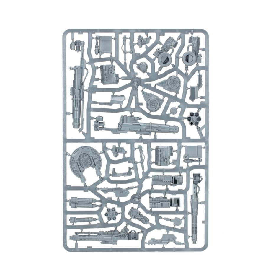 The kit is packed with detail and offers plenty of ways to personalise your Titan. You'll find heraldic shields, and different designs of armour plate with sculpted imagery. The kit features joints at various points, allowing you to pose your Titan at its head, knees, waist, and more. Its defence batteries and carapace weapon are also adjustable, meaning you can aim them appropriately – or even assemble them without glue and move them mid-battle.