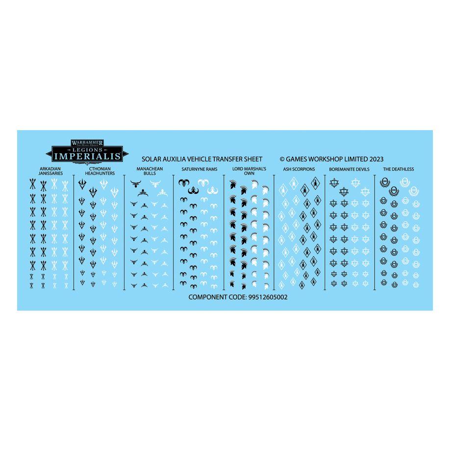 This kit comprises 132 plastic components, and comes with 1x Legions Imperialis Solar Auxilia Vehicle Transfer Sheet, containing 288 waterslide transfers. These miniatures are supplied unpainted and require assembly – we recommend using Citadel Plastic Glue and Citadel Colour paints.