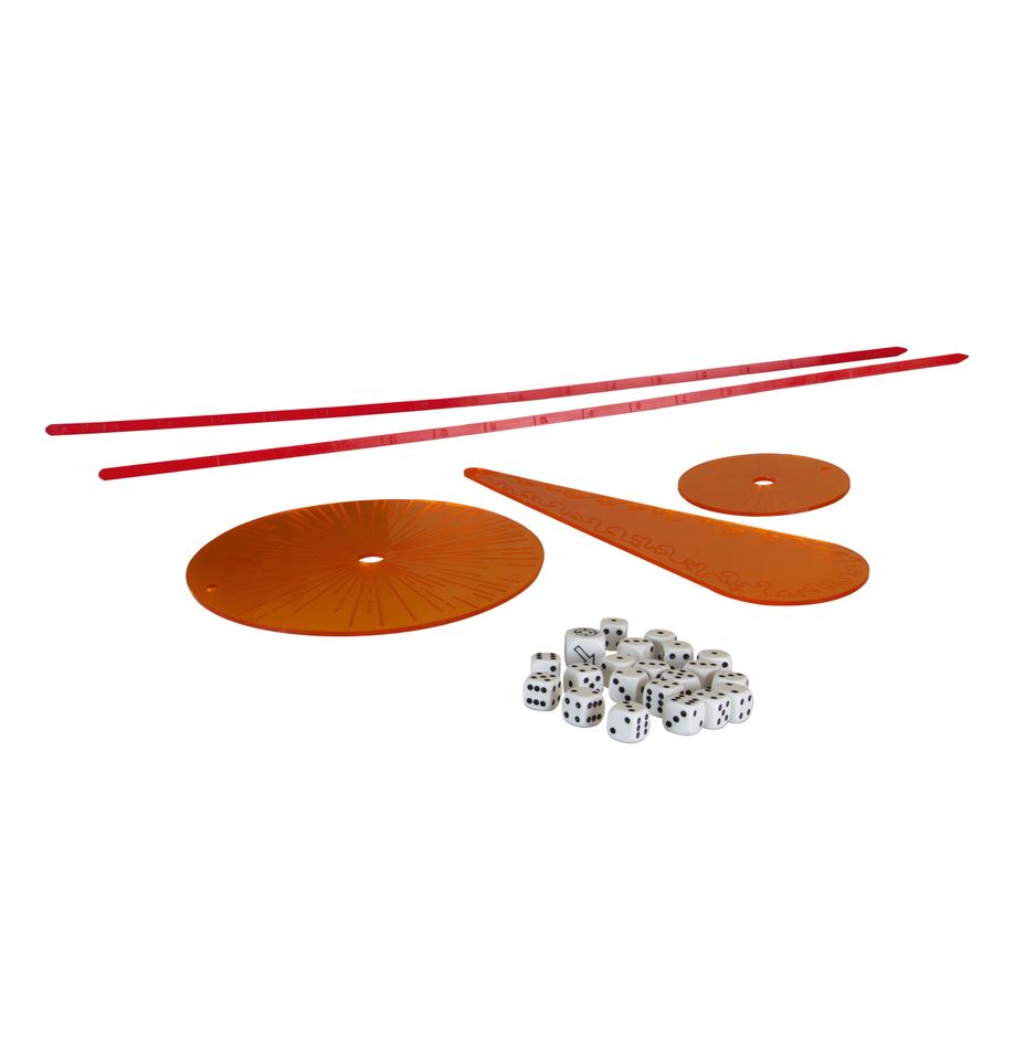 – 3x weapon templates in translucent orange plastic