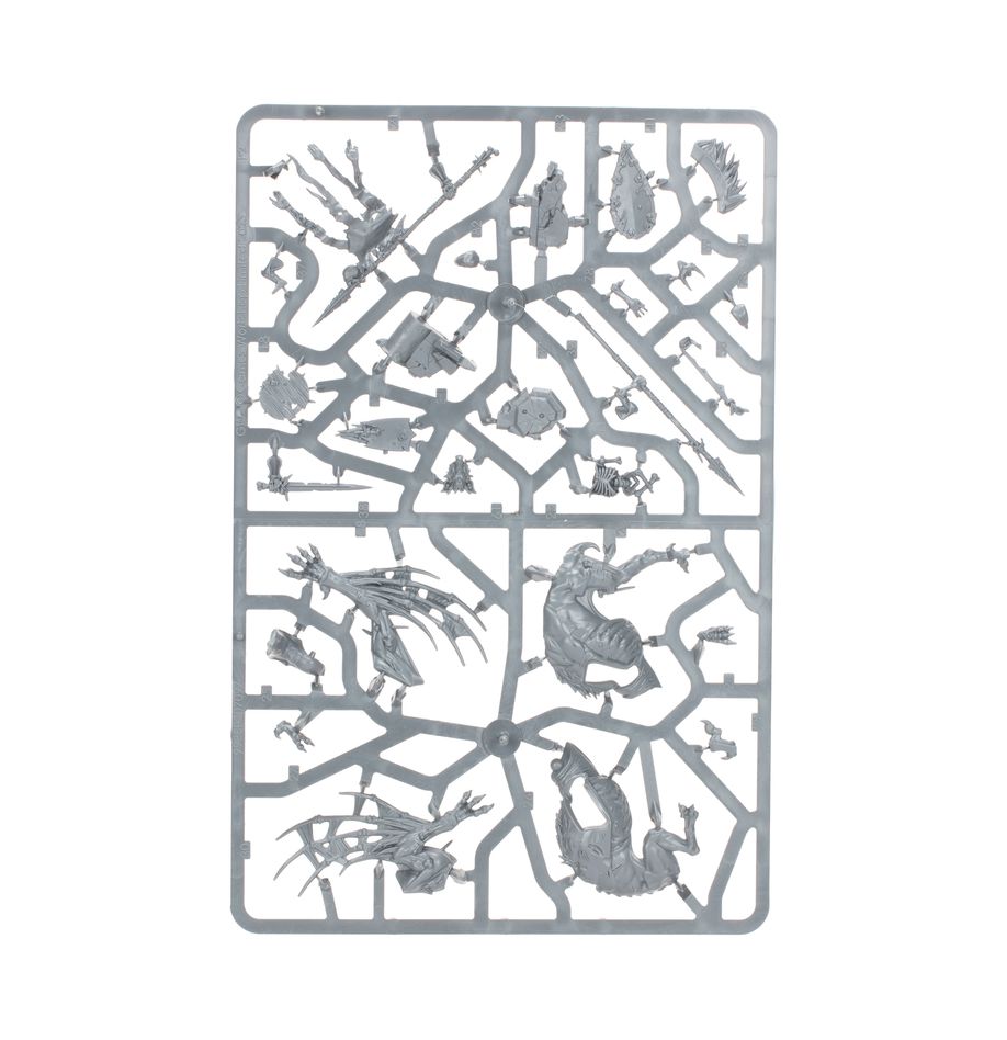 A unit of Cryptguard clutch rusted weapons in filth-crusted claws, whilst Morbheg Knights swoop from the skies atop shrieking steeds. These fiends are led by mad and monstrous vampires – a cruel Abhorrant Archregent, and a debased but formidable Varghulf Courtier.